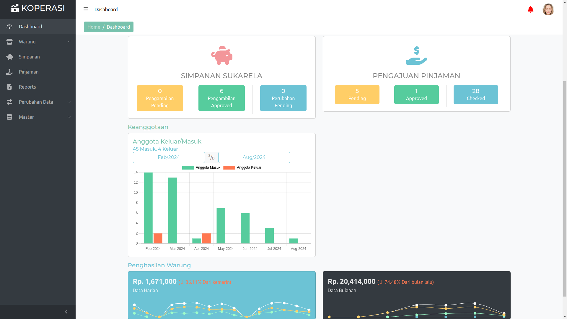 Aplikasi Koperasi (Saldo, Pinjaman, Simpanan, Transaksi dll)